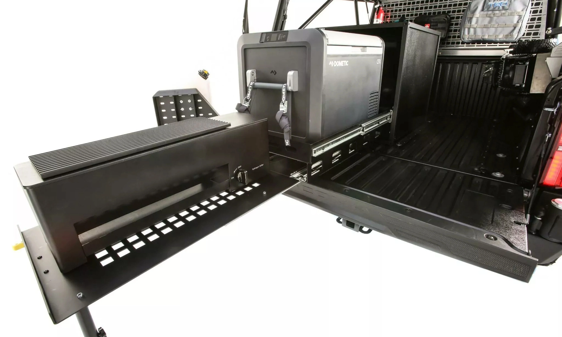 Ngoài những thay đổi về công nghệ, Tacoma H2 Overlander còn được “tút” lại ngoại hình với tấm chắn gầm mới, cản sau off-road, các điểm neo móc, tời, đèn LED bổ sung và lớp sơn trắng xanh đặc trưng của các mẫu concept H2 trước đây. Tính năng vận hành được mở rộng đến phần đuôi xe, nơi lều trên nóc bật lên và mái che phía sau mở ra từ cả ba phía. Cửa sau treo một bánh xe dự phòng cỡ lớn, sẵn sàng cho những chuyến đi dài ngày.